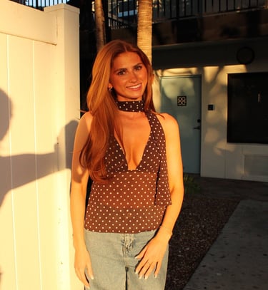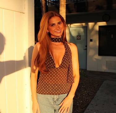 Recently, I’ve been reaching for this brown polka dot halter more than anything else. Brown has always been one of my favorite colors, and lately it has felt even more like my go-to for fun nights out. I always get compliments from friends when I wear it, and it’s easy to see why. It’s simple, flattering, and feels a little playful, whether I’m heading out for dinner, drinks, or just spending the evening with friends.
